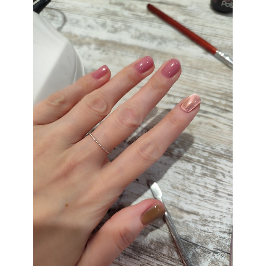 Лак понравился. Наносится и магнитится хорошо. При рассеянном и не ярком свете отливает розовым. На солнце больше золотистый отлив.