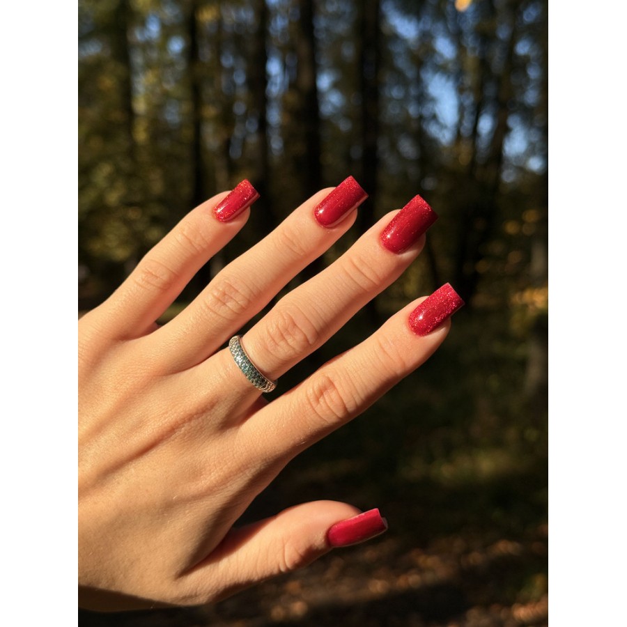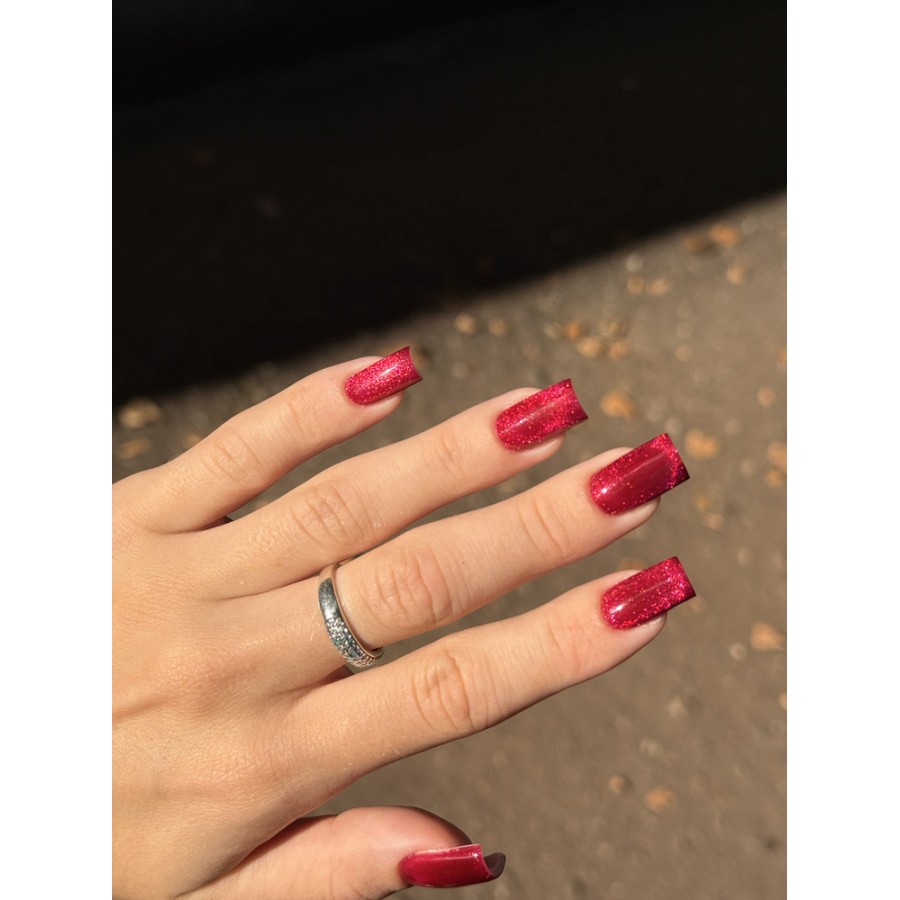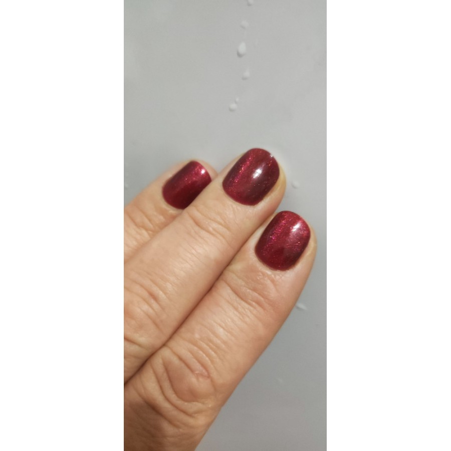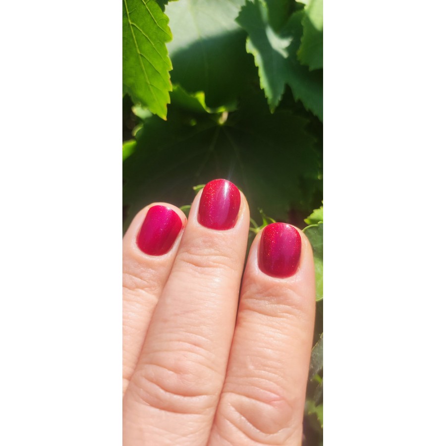 Лак супер, очень красивый благородный цвет. При исскуственном свете винно рубиновый, а на солнце ярко малиновый с искристыми бликами